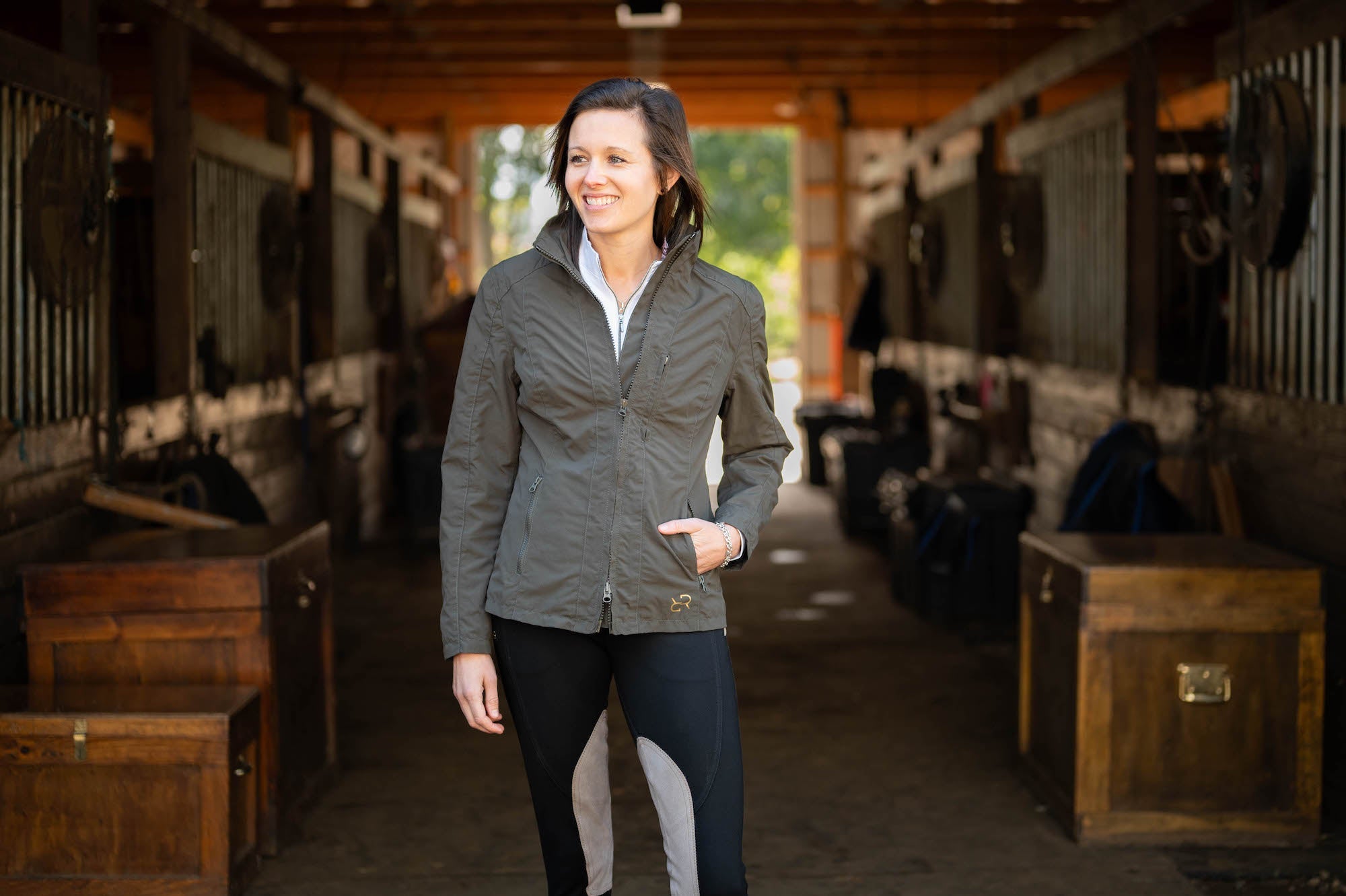 The Always Riding Jacket is your go-to layer for spring and fall, offering lightweight comfort with a breathable, water-resistant shell. Its slim, hip-length fit and double-ended zipper give you maximum mobility in the saddle, while a fitted neckline and secure pockets — including a roomy back pocket — keep you protected and prepared. Designed for riding and barn work in milder weather, it’s the jacket you’ll reach for every day.